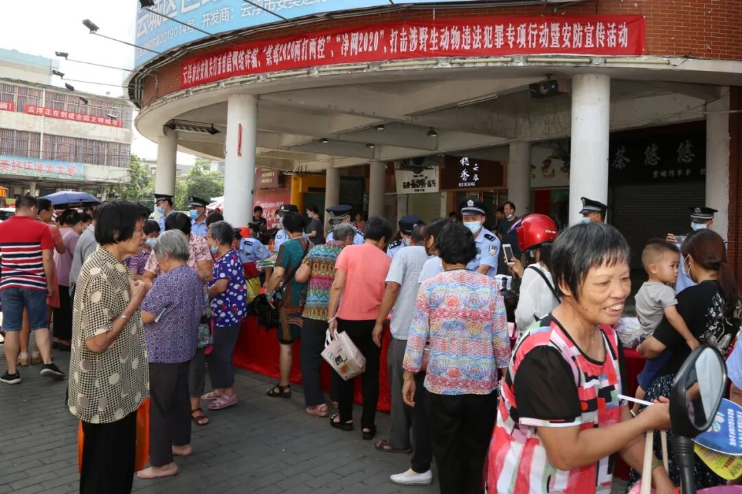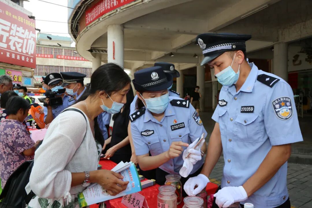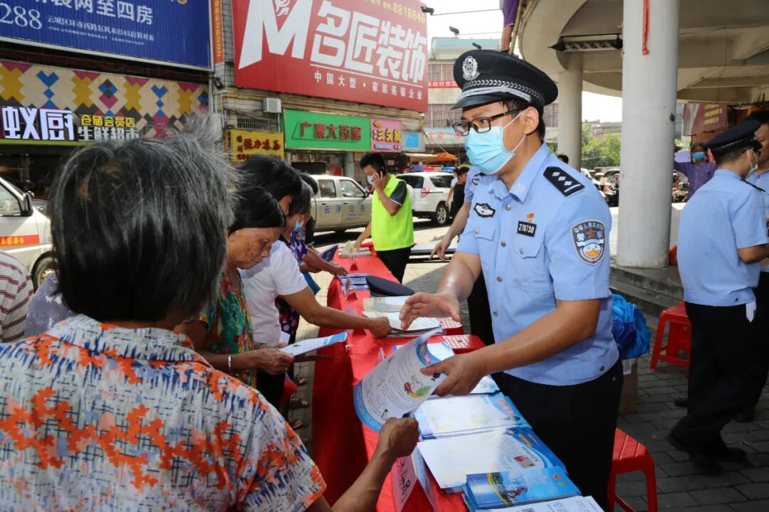 为深入推进“飓风2020”专项行动,向社会充分展示行动开展以来取得的阶段战果,提高市民的安全防范与法治意识,提升群众安全感和满意度,6月24日上午,我市公安机关在市影剧院门前举行“云浮市公安机关打击电信网络诈骗、‘禁毒2020两打两控’、‘净网2020’、打击涉野生动物违法犯罪专项行动暨安防宣传”活动。市公安局宣传、刑侦、禁毒、网警、打私等部门,云城分局、森林分局民警,以及市烟草专卖局、市反诈中心相关人员参加活动,对现场群众派发宣传资料,开展法制宣教,并接受群众咨询。