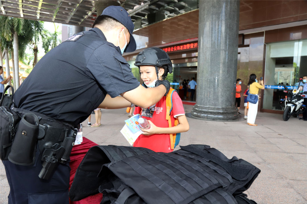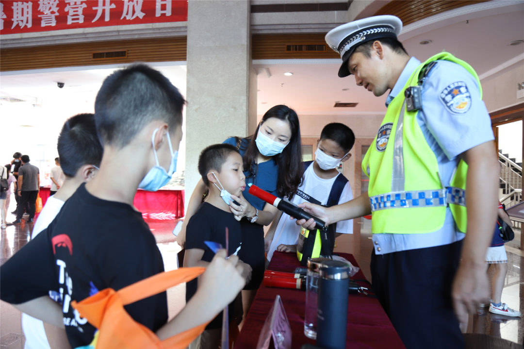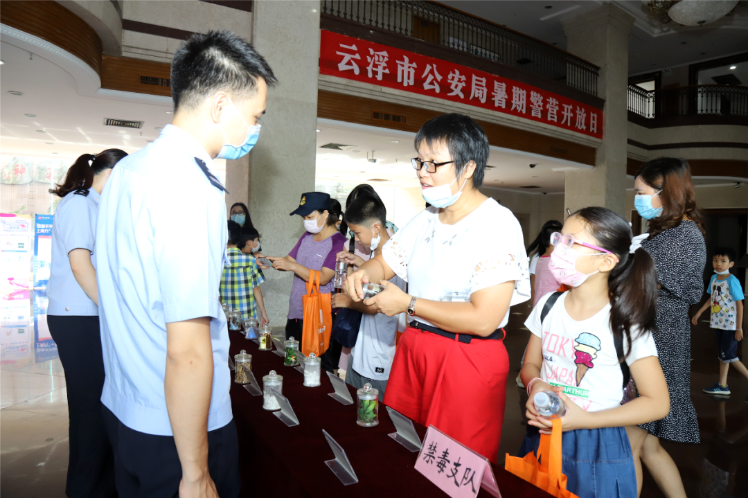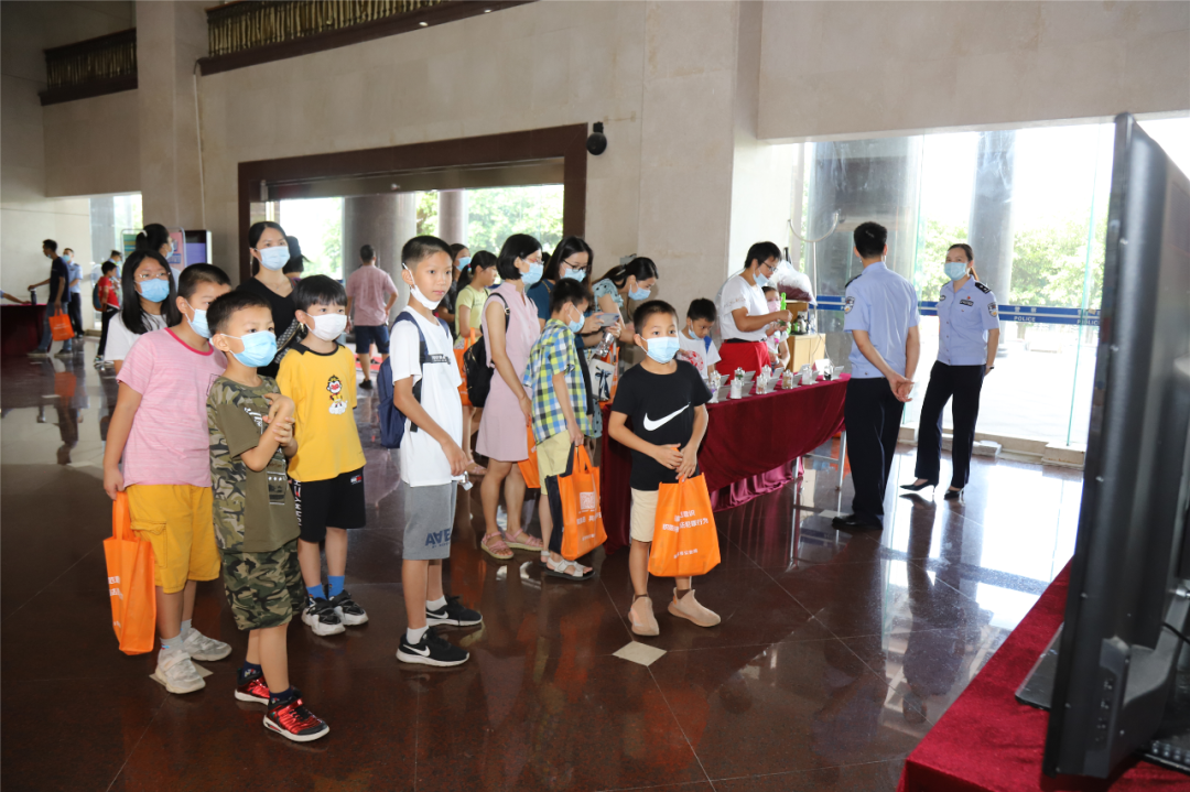 在市公安局的开放日活动现场,小朋友们观看了交通安全、防毒、防骗、安全上网等暑期安全宣传教育视频;又通过实物展示和现场讲解,见识了形态各异的各种新型毒品并了解到它们的危害。