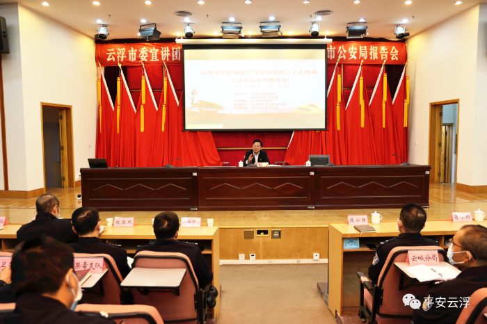为深入学习宣传贯彻党的二十大精神,引导全体民警辅警切实把思想和行动统一到党的二十大精神上来,12月12日,市公安局举办学习贯彻党的二十大精神专题报告会,报告会邀请了市委宣讲团成员、市直机关工委副书记卓瑞标为广大民警辅警作专题辅导。市局在家局领导、市局和云城分局民警辅警、2022年在训新警学员共400人现场聆听报告。