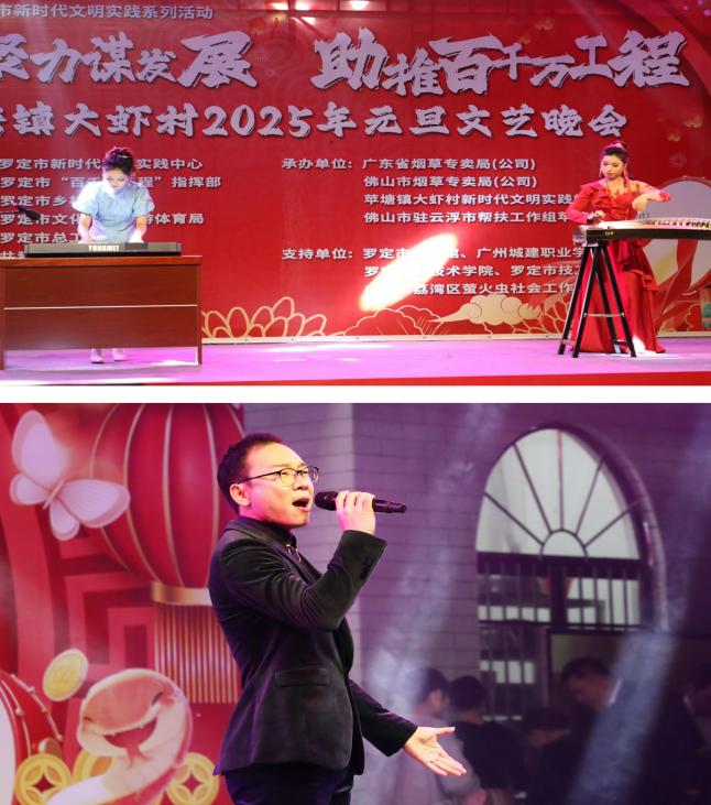 团队组织开展苹塘镇大虾村2025年元旦文艺晚会(“村晚”)活动,通过多样化新媒体推广、送戏下乡、现场直播等方式为乡村文化盛宴注入了新活力,拓宽了乡村文化传播渠道。团队与新媒体学生聚焦晚会现场,全方位采集视频素材,精心制作晚会VLOG视频,以新颖视角回顾晚会精彩全程,为活动留下生动影像记录。此外,师生团队进一步深入苹塘镇,收集当地自然风光与人文景象的照片及视频素材,为后续制作苹塘镇宣传片积累丰富资源,持续为乡村文化传播续航,助力乡村形象塑造与推广。
