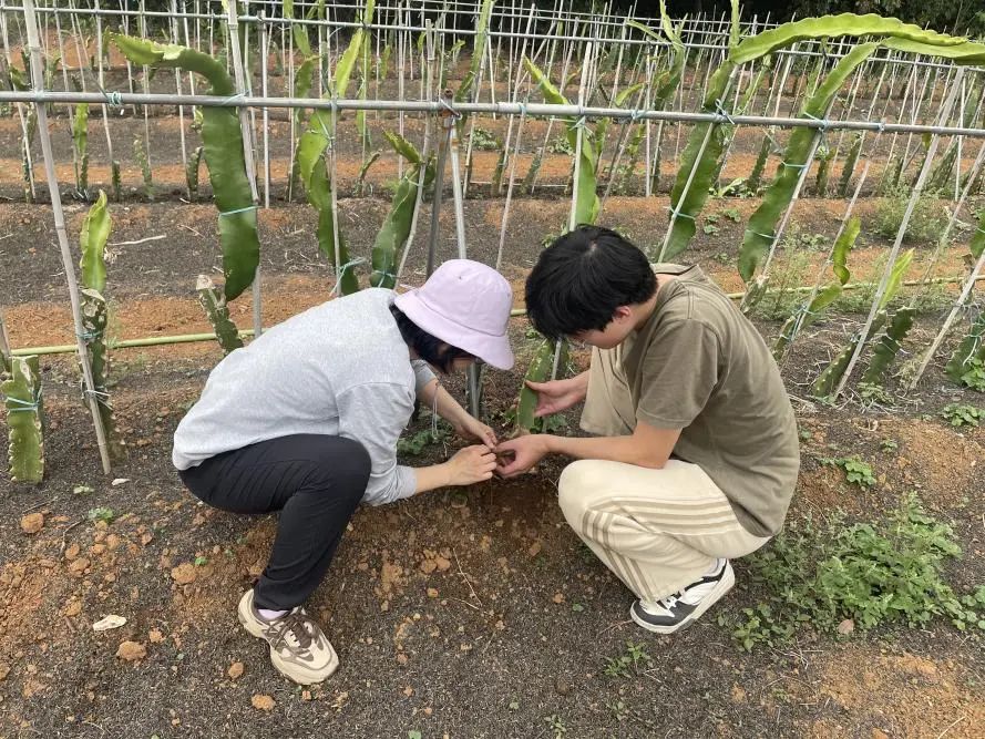团队到广东恒华源智慧农业有限世界十大赌网站欢迎您位于金鸡镇的火龙果种植基地现场调查,发现火龙果土传病害根结线虫发病较为严重。针对根结线虫病,特派员团队积极寻找解决办法与防治手段,筛选防治药剂,在种植基地开展田间防治实验,目前已完成施药,逐步跟进,找出最优防治策略与手段,进一步健全完善火龙果产业生产种植体系。在施药过程中发现火龙果种植田内多处有红火蚁成群出现,特派员韩群鑫教授与颜珣研究员检查蚁穴位置,嘱咐实验调查人员与工人应注意防护,注意相关事项,强调基地对于红火蚁防治要引起重视,及时施用饵剂等防治药剂,并做好安全防护。