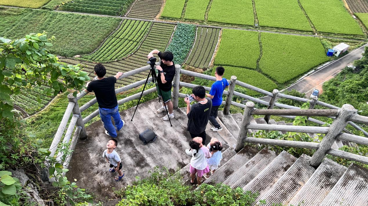 团队克服高温与暴雨的轮番影响,在驻镇帮镇扶村工作队与文化站全程协调与实地引领下,深入喀斯特山林、田园风光、千年溶洞、传统村落等最具代表性的场景,确保精准捕捉苹塘文旅精华,用最美镜头拍摄美丽乡村原貌。同时,这种实践活动有效打通了理论教学与生产实践的“最后一公里”,让书本知识在田间地头“活”了起来,促使青年学子深刻体会到科技兴农的责任与使命,最终实现了实践育人与服务地方发展的“同频共振”。