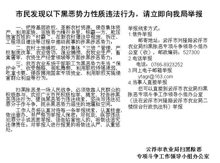 市民发现以下黑恶势力性质违法行为,请立即向我局举报