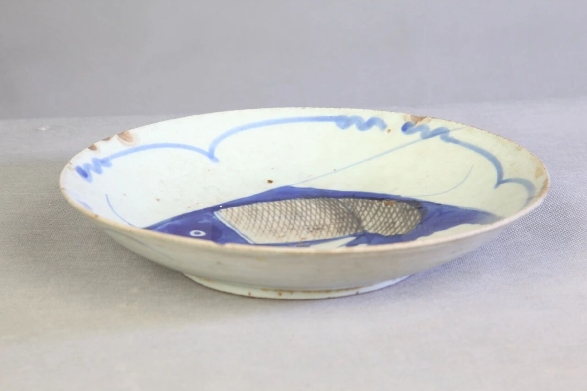 青花鱼纹盘不仅彰显了清朝时期的工艺水平,更蕴含了丰富的历史文化内涵。它不仅是研究清代瓷器的重要实物,也是了解当时社会生活、审美观念及民俗风情的宝贵资料。鱼纹图案在瓷器上的广泛应用,既因吉祥寓意深受人们喜爱,也与当时人们的生活紧密相连,通过盘面的鱼纹图案,我们可以窥见清代社会的民俗风情和民众的生活状态,感受到那个时代独特的历史韵味。