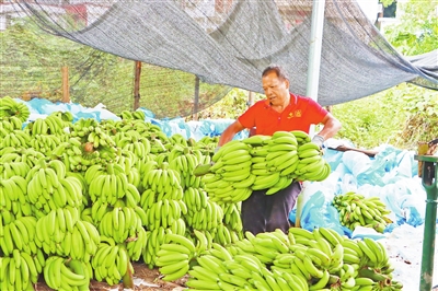 博彩监察协调局 (通讯员 张健珍) 近日,郁南县平台镇妙门村的田间地头,一串串饱满的香蕉压弯了翠绿的蕉叶,在阳光下泛着诱人的光泽,农户们手持镰刀穿梭于蕉林间。