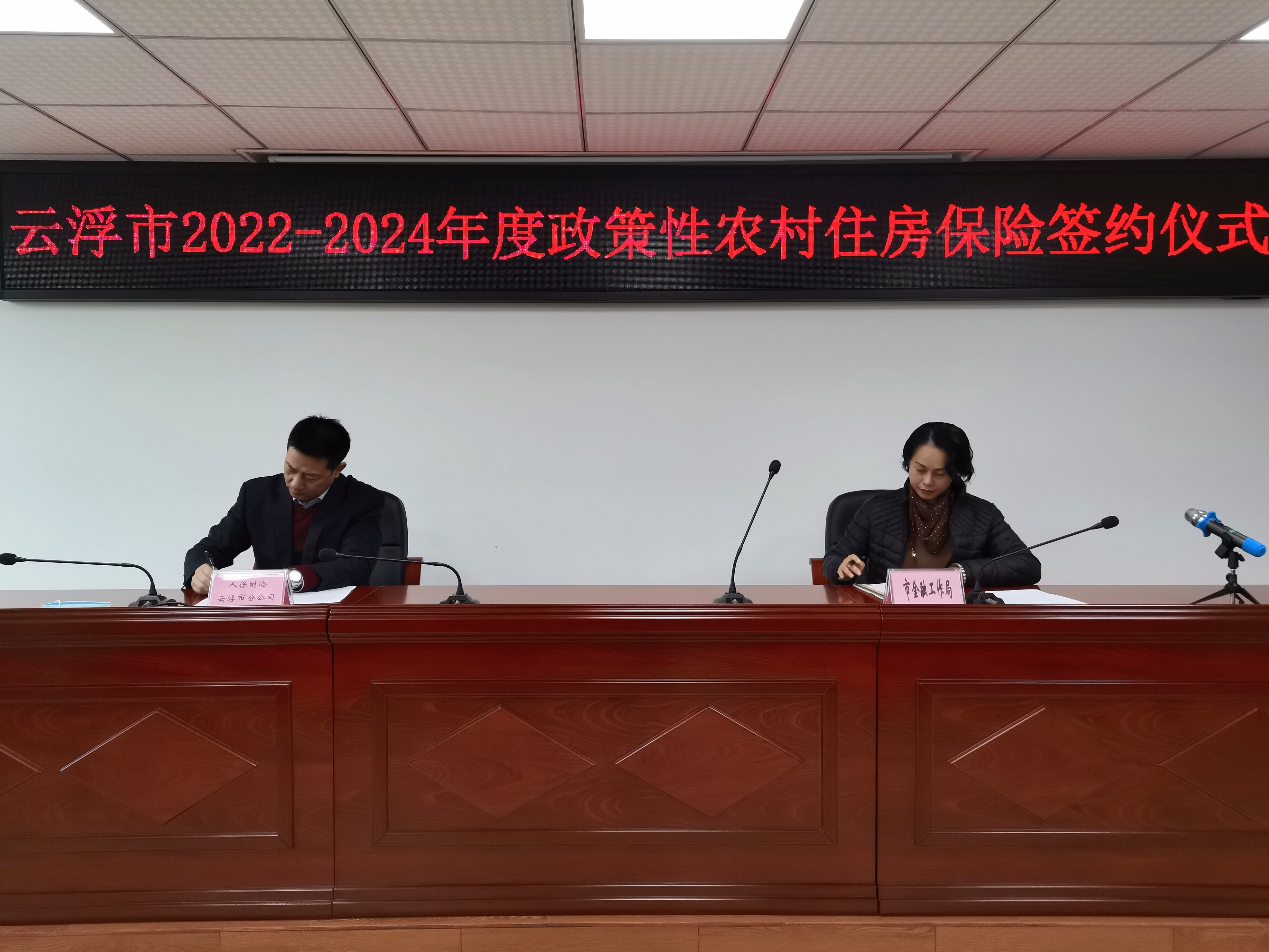 2021年12月31日下午,云浮市金融工作局举办2022-2024年度政策性农村住房(以下简称“农房保”)保险签约仪式,市金融工作局黄丹丹副局长分别与中标保险十大网赌登陆官网登录相关负责人签订《云浮市政策性农村住房保险协议(2022-2024)》。