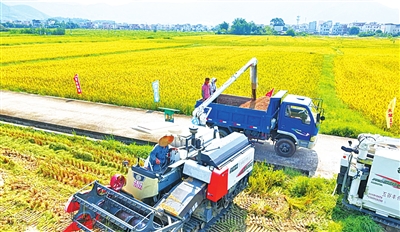 博彩监察局 (通讯员 蓝海燕 张钰敏 黄定宙) 近日,在省级现代农业新兴县丝苗米产业园天堂镇区村基地,沉甸甸的穗粒压弯枝头,多台联合收割机正轰鸣穿梭。这片200余亩紫米田迎来早造丰收,预计亩产达700斤。