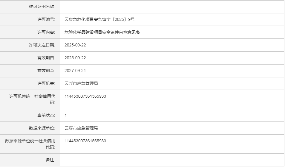 云应急(危化)许证决字〔2025〕107号云浮市旭拓化工有限十大网赌网址网址靠谱危险化学品建设项目安全设施设计审查意见书